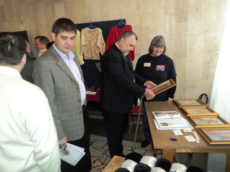 В фойе ДК «Современник» в праздничный день была организована выставка декоративно-прикладного искусства, где демонстрировали свои таланты и способности люди с ограниченными возможностями здоровья. На выставке были представлены всевозможные изделия из бисера, макраме, соломки, аппликации, резьбы по дереву, вышивки.