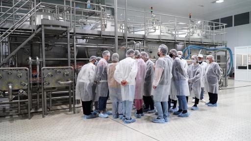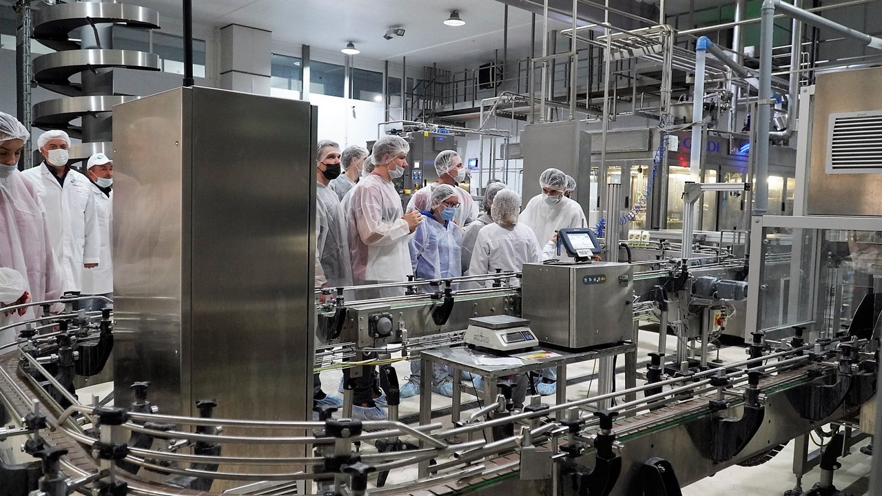 Экскурсия для студентов 3 и 4 курсов факультета товароведения и экспертизы сырья животного происхождения по производственным объектам ПО «Дмитрогорское» (входит в ГК «Агропромкомплектация») прошла в Конаковском районе Тверской области. Первым пунктом маршрута стало инновационное роботизированное предприятие – ООО «Дмитрогорский молочный завод». Один из лидеров отечественной переработки молока, участник национальных проектов, таких как «Производительность труда», с первых минут впечатлил студентов высоким уровнем автоматизации и техническим оснащением цехов. Сегодня завод перерабатывает 90 тыс. тонн сырого молока в год. Здесь ежегодно производится 50 тыс. тонн готовой продукции высокого качества – всего более 140 наименований. Эти цифры будут расти – в ближайшее время предприятию предстоит реконструкция для увеличения объемов производства в рамках реализации стратегии интенсивного развития Группы компаний. Студенты узнали, как молоко поступает на завод с молочных комплексов КРС Группы компаний, и увидели бесперебойную работу нескольких цехов. Будущих специалистов интересовали совершенно разные аспекты: от особенностей возведения самого здания до выпуска готовой продукции. Они активно задавали вопросы начальнику отдела капитального строительства АО «Агрофирма «Дмитрова Гора» Максиму Голубеву и технологу по инновационным разработкам ООО «Дмитрогорский молочный завод» Любови Пак.