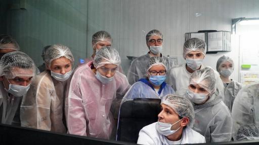 Следующим пунктом производственной экскурсии стало ООО «Дмитрогорский мясоперерабатывающий завод». Исполнительный директор предприятия Эльдар Гиматов и руководитель службы контроля качества Геннадий Тен провели гостей по производственным площадкам, рассказали о работе цехов завода. Живой интерес студентов вызвало колбасное производство, которое выпускает 26 тыс. тонн готовой продукции в год. Ребят интересовало абсолютно все: от входного контроля сырья, поступающего со свинокомплексов ГК «Агропромкомплектация», до обустройства и работы очистных сооружений и экологической ответственности предприятия. Эксперты Группы компаний отметили вовлеченность студентов, высокий уровень знаний и хорошую подготовку, что в будущем позволит им стать востребованными специалистами.