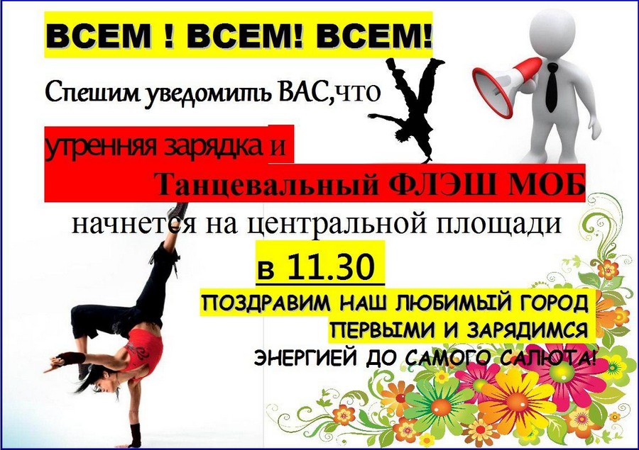 С самого утра в честь Дня города были устроены различные соревнования, члены МС активно принимали в них участия. Участвуя как в индивидуальных зачетах, большой теннис, так и в командных, была организована и выставлена команда по пляжному волейболу от МС. Но МС не ограничился спортивными играми. Для того, чтобы поднять настроение жителям и как следует взбодрить их, в преддверии открытия мероприятий, члены МС провели на центральной площади зажигательную, общегородскую зарядку, по завершению которой был организован второй танцевальный флешмоб, каждый мог подойти и поучаствовать.