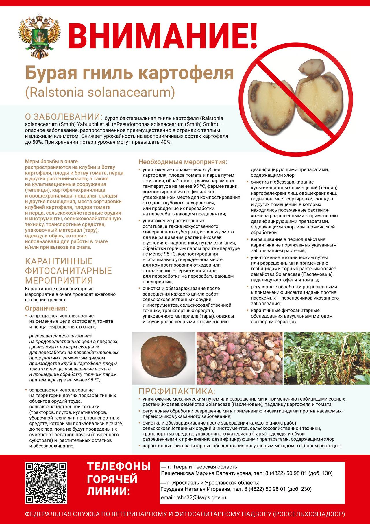 В связи с высоким риском заноса и распространения карантинных объектов с импортным картофелем на территорию региона, предупреждаем граждан и организации о фитосанитарных рисках, связанных с приобретением и употреблением зараженного картофеля, прежде всего, при использовании его в качестве семенного материала.