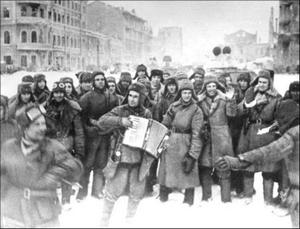 Просто смотреть на фотографии Сталинграда страшно, а как же там можно было находиться, сражаться? Я не могу понять, какой силой духа нужно было обладать! Мой дедушка выжил в этой страшной битве. Я могу только представить, как тяжело и страшно было моему прадеду и другим русским солдатам в этом сражение, потому что он никогда не рассказывал о том, что ему пришлось пережить. Эту фотографию мы увидели в Интернете. Это Сталинград, февраль 1943 года. Солдаты отдыхают, веселятся, они живы! Может быть, где-то среди них был мой прадед.