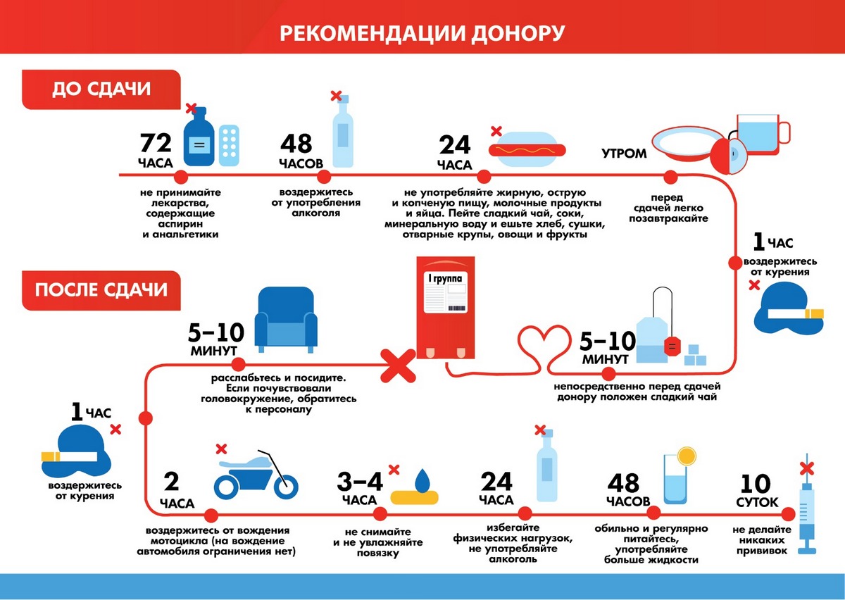 Отсутствие хронических заболеваний и противопоказаний (ОРВИ, операции, татуировки в течение года и т.д.).
