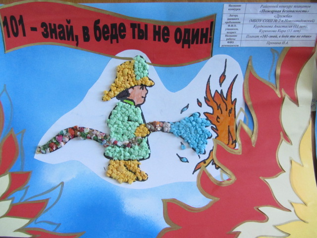 В «Районном конкурсе плакатов «Пожарная безопасность» первое место занял плакат лагеря с дневным пребыванием при МБОУ СОШ с. Юрьево-Девичье. Второе место поделили плакаты лагерей при МБОУ СОШ №2 п. Новозавидовский и МБОУ С(К)Ш №4 г.Конаково. Третье место также разделили лагери двух школ: МБОУ СОШ п. Первое Мая и МБОУ СОШ №2 г. Конаково.