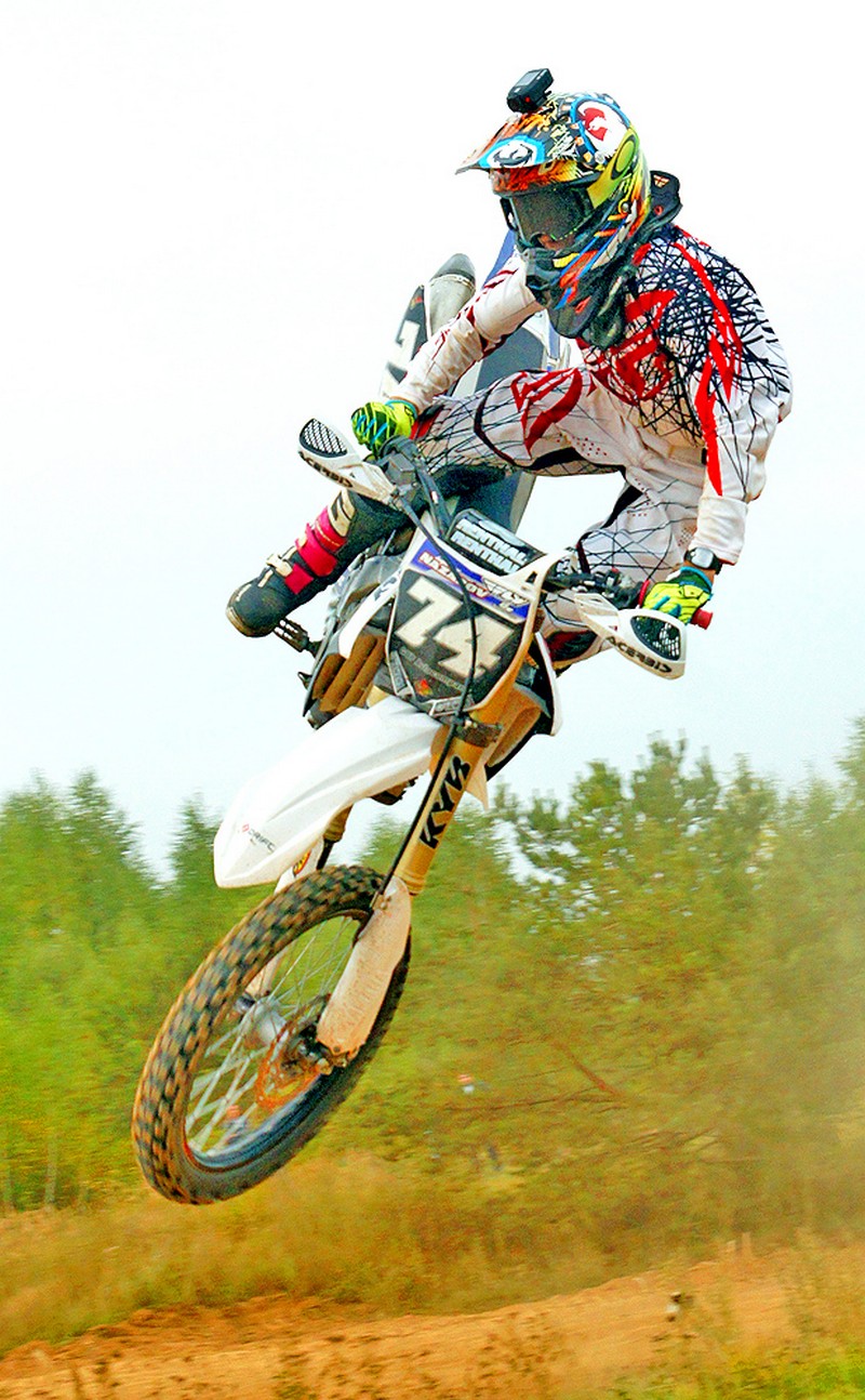 В мотокроссе приняли участие гонщики из Твери и Москвы, Дубны и Павлова Посада, Торжка, Рыбинска, Ярославля, Московской области, Смоленска, Костромы, Калуги…в общем – весь центр России был у нас в гостях. Поразил своим щеголеватым стилем гонки многократный (не смотря на свой 16-летний возраст) чемпион страны Артем Назаров из Павлова Посада. Разумеется, он пришел первым в обоих заездах в своем классе 125 кубов, его отец, стартовавший в ветеранском классе также в оба заезда пришел вторым. Но как шел по трассе Назаров-младший! В ослепительно светлом комбезе, с экшн-камерой на шлеме, он после каждого трамплина летел плашмя, почти параллельно земле, казалось - что разобьется, но каждый раз, его мотоцикл четко вставал на колеса! Это уже была не просто гонка – это было шоу, и шоу высокого класса!