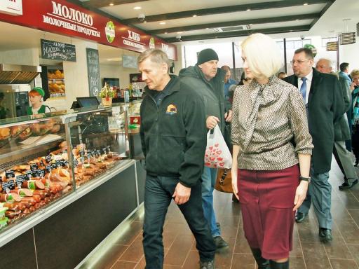 Первым пунктом поездки стал магазин фирменной продукции агрофирмы в городе Конаково, где представлен широкий ассортимент качественной продукции по доступным ценам. Здесь их встретили Глава Конаковского района Людмила Козлова и Глава администрации района Олег Лобановский. Далее делегация посетила животноводческий комплекс, мясоперерабатывающий и комбикормовый заводы. То, что предприятие активно развивается, наращивает мощности, подтвердил осмотр двух строящихся объектов: свиноводческого комплекса на 60 тыс. поголовья и комплекса крупного рогатого скота, с запуском которого будет удвоено производство молока. Всё это стало возможным, в том числе, благодаря государственной поддержке: за 4 года холдинг получил в виде субсидий более 1 миллиарда 800 миллионов рублей.