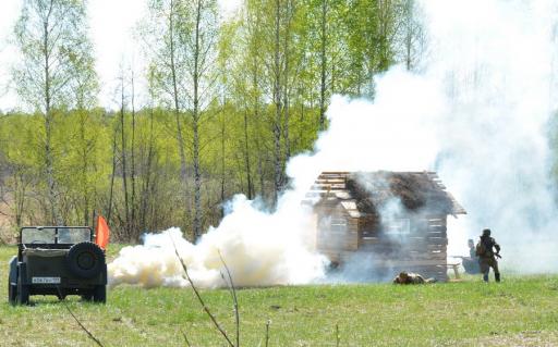 Траурный митинг завершился возложением цветов к мемориалу. После этого воспитанники военно-патриотического центра «Звезда» показали собравшимся собственную реконструкцию боя у деревни Рябинки.