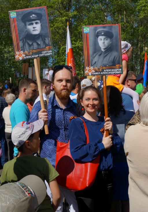 В День Победы 9 мая в Конаково состоялось праздничное шествие жителей района. Колонна прошла от здания военкомата на улице Свободы до Комсомольского сквера. Многие несли самодельные транспаранты с фотографиями и фамилиями своих родных — участников Великой Отечественной войны.