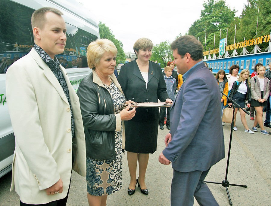 На площади перед зданием администрации района состоялась торжественная передача молодежным и спортивным организациям района нового микроавтобуса, который теперь будет использоваться для отправки спортсменов на соревнования и команд молодежных общественных объединений на массовые мероприятия. Этот автобус приобретен при активном участии депутата Законодательного Собрания Тверской области Надежды Егоровой. Именно Надежда Александровна изыскала возможность выделить из депутатского фонда средства на приобретение такого транспортного средства (стоимость автобуса составила 2,4 млн.рублей). «Мы всегда гордимся нашими спортсменами, нашей активной молодежью, - сказала Надежда Александровна. - И надеемся, что теперь у конаковских спортсменов и волонтеров будет больше возможностей, больше побед, больше золотых медалей. В путь!».