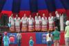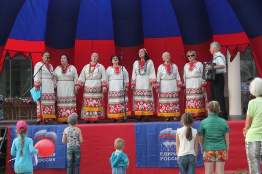 После поздравлений жителей официальные лица вместе с Народным академическим хором МУ ДК «Химик» исполнили гимн Российской Федерации. Ярким эпизодом мероприятия явился вынос должностными лицами огромного триколора, символа сильной и непобедимой России.