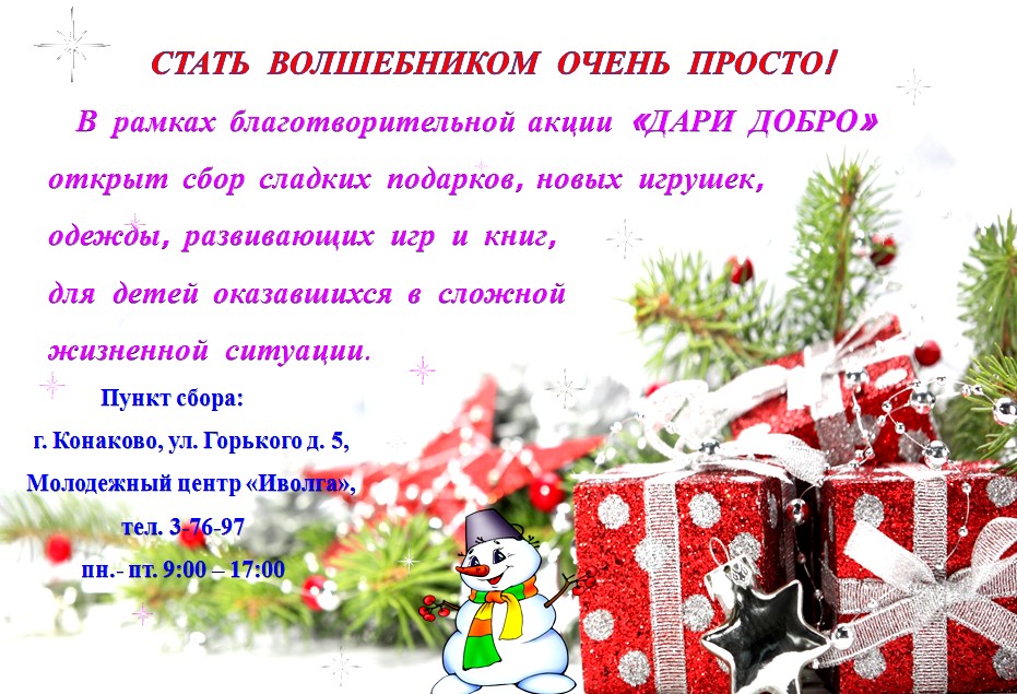 В рамках благотворительной акции «Дари добро» продолжается сбор сладких подарков, игрушек, развивающих игр, книг, школьных принадлежностей и одежды.