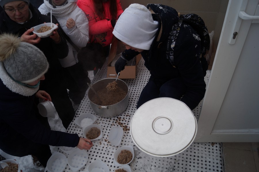 После прохождения этапов всех ребят ждала каша и горячий чай, приготовленные работниками школьной столовой д. Мокшино.