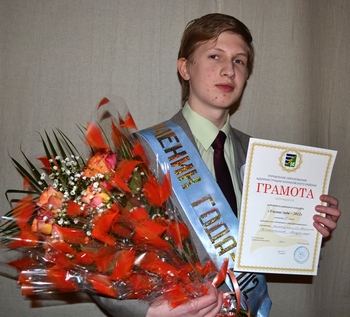 Памятную ленту «Ученик года-2012» и грамоту управления образования администрации Конаковского района победителю конкурса Котельникову Владимиру, ученику 10 класса гимназии №5 г.Конаково, вручили председатель Собрания депутатов Конаковского района, и.о.Главы Конаковского района Е.Н. Посысаева и и.о.начальника управления образования С.В.Клюшанова. В нелегкой борьбе с большим отрывом Владимир одержал уверенную победу.