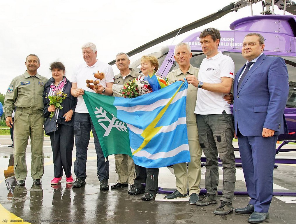 Олег Лобановский поздравил экипаж и вручил памятные подарки: «Вы выполнял задачу государственного масштаба, пролетев вокруг света, показали, что Россия это цивилизованная страна, что в ней развиваются такие виды спорта как вертолетный, и что мы можем достойно совершать великие вещи. Теперь, благодаря вам, Конаково знает весь мир». Участники расписались на флаге Конаковского района, который станет музейным экспонатом Селиховской школы.
