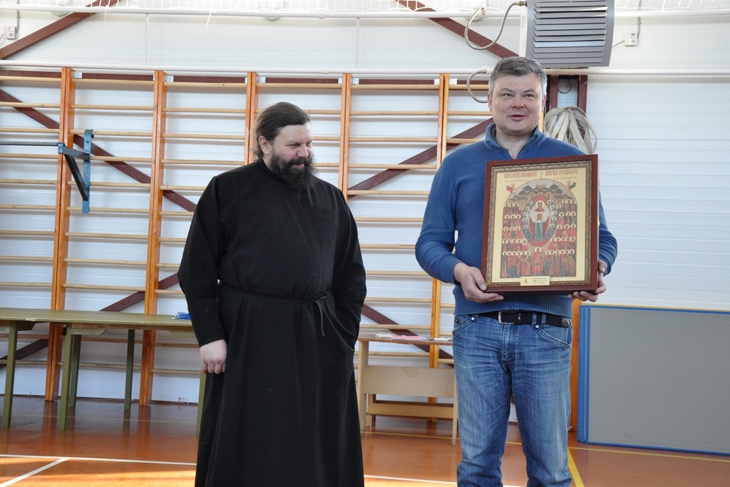 Открыл турнир Глава поселения Андрей Лукьянов. Он торжественно вручил протоирею Храма Георгия Победоносца отцу Владимиру икону Всех Святых-покровителей воинства Российского. Эту икону Храму передал Губернатор Тверской области Игорь Руденя на мероприятии в честь празднования Дня защитника Отечества.